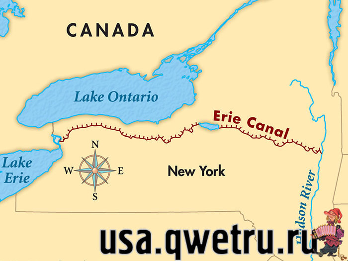 В 1817 г. Девитт Клинтон (губернатор штата Нью-Йорк) оплатил из казны штата строительство канала Эри, соединявшего Великие озера с Атлантикой. Строительство канала длиной 584 километра завершили через 8 лет 26 октября 1825 года. Открылась дорога к богатейшим хлебным районам Северо-Запада. Пеший путь туда проходил через Аппалачские горы. Ни один крестьянин со своим скарбом проникнуть на северо-западные территории не мог. Освоение огромных территорий шло с юга, через Вирджинию и Огайо.