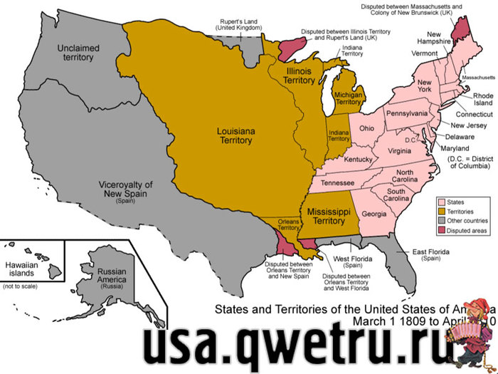 4 марта 1809 Томаса Джефферсона сменил Четвертый президент США — Джеймс Мэдисон (James Madison), который решил отметиться чем-нибудь более молодецким, чем секс с конкубинами. Например, войной. В результате Луизианской сделки на территории США образовался испанский анклав — Флорида, путавшийся под ногами и мешавший судоходству на Миссисипи. Американские войска с ходу заняли западную часть Флориды и таким образом Миссисипи полностью стала американской. Ничто не мешало речным купцам возить товары из Нью-Орлеана вглубь Америки и обратно. Испанцы, озабоченные проблемами в Европе и Латинской Америки, на потерю куска дремучих болот не реагировали.