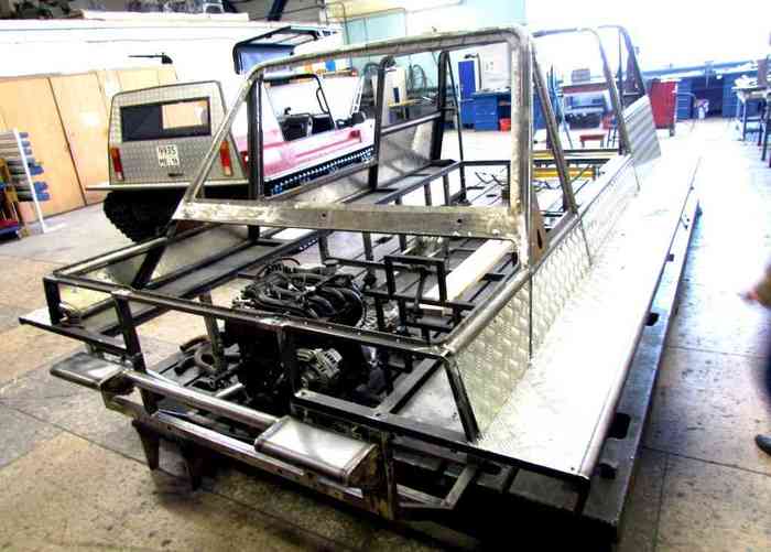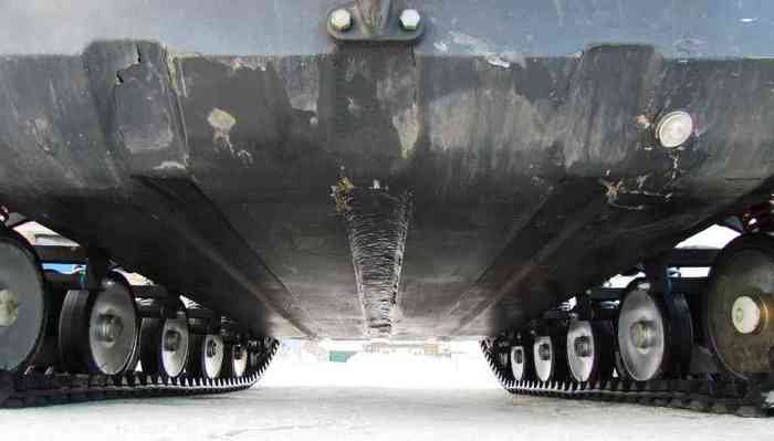 Корпус оригинальный, сварной и обшит алюминием. Учитывая, что вездеход у нас плавает, то к данной конструкции можно применить термин - рама-лодка. Нижняя часть представляет собой стальной каркас герметично обшитый алюминием. На плаву держится, как обычный катер. Движение на воде за счет гусениц, что в общем-то тоже является практичным и стандартным решением. Вопрос исполнения.