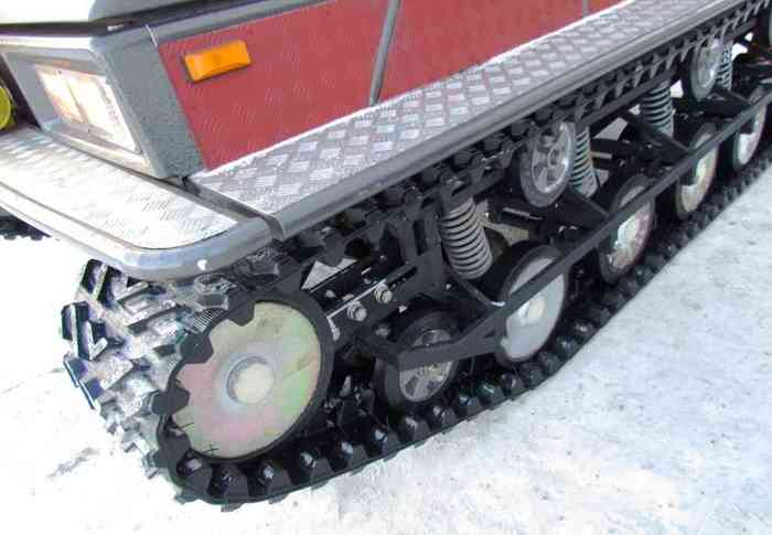 Что по гусянке. Резинка, двухслойная с армирующим кордом. Заказывают на специализированном заводе. На каком не уточнял, но у нас их и не так много, хотя предполагать не берусь. Ресурс гусянок 5 тыс. км, что не плохо. Но производитель утверждает, что 5 тысяч километров это гарантированный срок службы, а реально гусянка может проходить и 10 тысяч и больше.