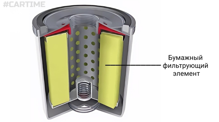 Давайте проведём эксперимент. Но для начала изучим конструкцию масляного фильтра. Масляный фильтр — это жестяная банка, внутри которой находится бумажный фильтрующий элемент.