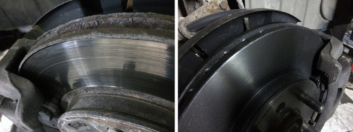 Проверьте выработку тормозных дисков и тормозных колодок. Износ колодок на передней оси должен быть одинаковым, как и у колодок на задней оси, между собой. Если с одной стороны автомобиля износ колодок больше, чем с другой, может быть подклинивать направляющая суппорта и требовать обслуживания или даже может быть неисправен главный тормозной цилиндр.