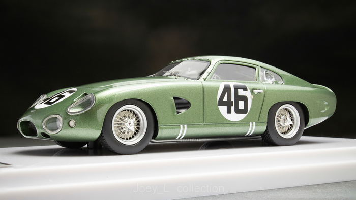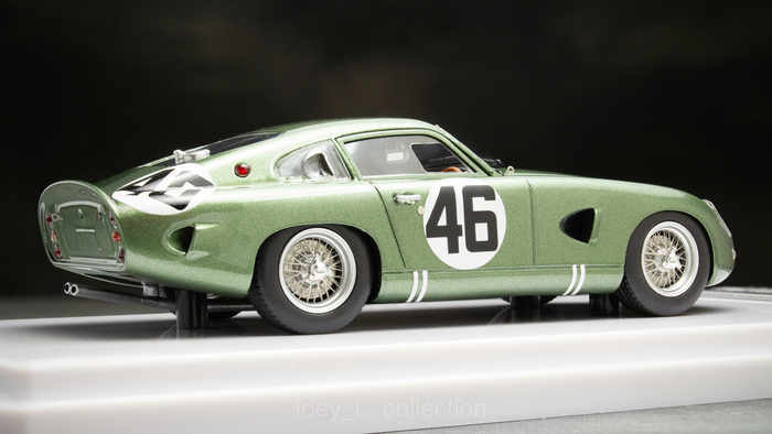 Модель от Спарка представляет собой фактически версию Pagani Zonda GR с текстовых заездов Ле-Мана 2004 года, не с самой гонки, как указано на подставке (что также заметно по отсутствующим спонсорским логотипам). Модель редкая, ранний Спарк, неидеальная, но и не плохая. Фототравлёных элементов по минимуму (дворник, рамка боковых окон, буксировочные петли), сейчас бы Спарк наверняка сделал бы её аккуратнее. Меня сразу смутил факт наличия двух групп выхлопных труб – четыре в круге и ещё две ниже, однако реальные фотографии передают, что так оно было и в реальности, только верхняя группа фактически не использовалась. Это красивая модель редкой GT в Ле-Мане и хороший экземпляр в любой коллекции автоспорта.