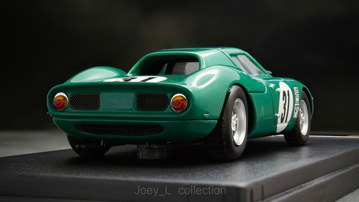 Модель прекрасна, хорошо детализирована и покрашена. Единственное, что смутило – это тонкие глухие выхлопные трубы. К слову, у Looksmart вышли также экипажи №26, №27, №30, №32, №33, №81 из этой же гонки, можно собрать все Ferrari из этой гонки. У меня есть также экипаж №33 от Looksmart (275 P пришёл восьмым) и №27 от Art Models (330 P до финиша не добрался). Вроде все три похожи друг на друга, а при детальном сравнении у них отличается почти всё – детали дизайна, колёсная база, геометрия.