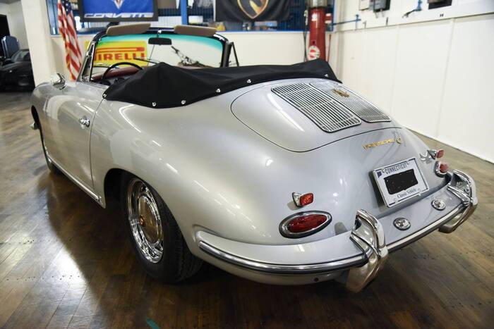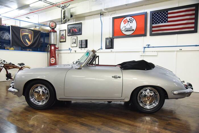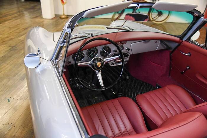 Автомобиль представлен в серебристом металлике с красными кожаными сиденьями, что создает потрясающее цветовое сочетание.