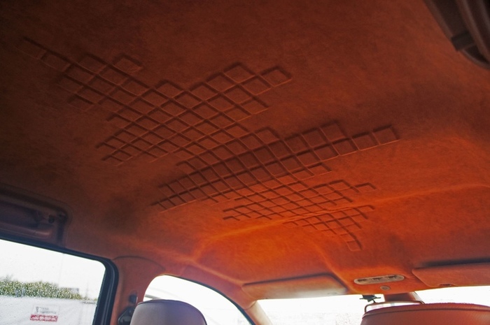 Также, если поднять свои глазёнки вверх, то можно увидеть отделку потолка - она тут из настоящей алькантары , но достаточно хорошего качества, да и к тому же объёмная,