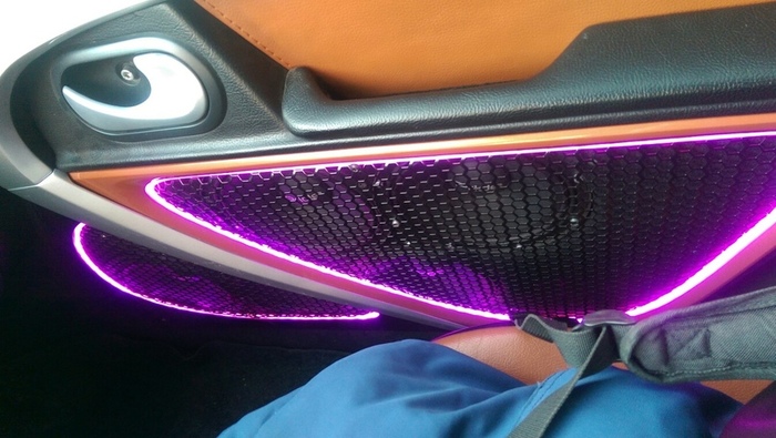 И да, чуть не забыл! Цветомузыка, она тут повсюду: в передних дверях, по контуру динамиков,