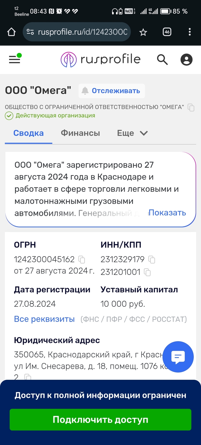 Начнем с того, что этим салоном заправляет некое ООО "Омега", которое зарегистрировано в Краснодаре.