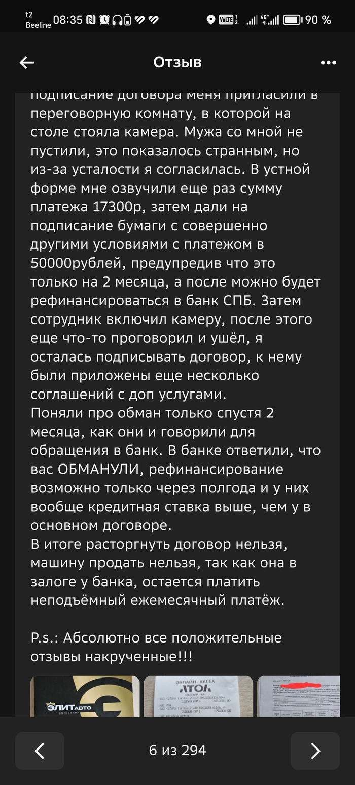 Похоже ли это на происки конкурентов? Судите сами. Лично я больше доверяю таким развернутым отзывам, чем написанным по шаблону. Там был и еще один такого же плана отзыв, но сумма в чеке на 200 тыс больше.