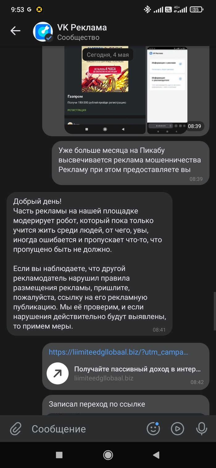 Предлагаю устроить рейд на ВК, ибо все эти мошеннические реклама предоставляет ВК, ибо если ткнуть 3 точки справа, а после "о рекламодателе", то он направляет в вк