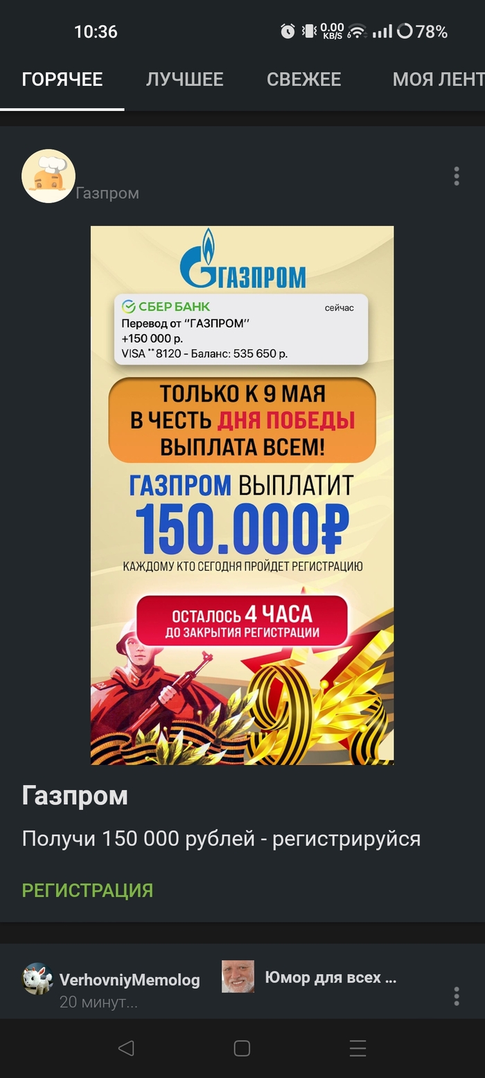 Я и раньше замечал, что реклама такого характера присутствует, но сегодня это переходит все границы. За 5 минут три одинаковых рекламных блока с явно мошенническим содержанием(а может я тупой и не верю своему счастью?). Будет ли администрация что то делать с таким рекламодателем(VK Реклама)? Пометка о мошенническом объявлении вообще никак не помогает не видеть подобную чушь
