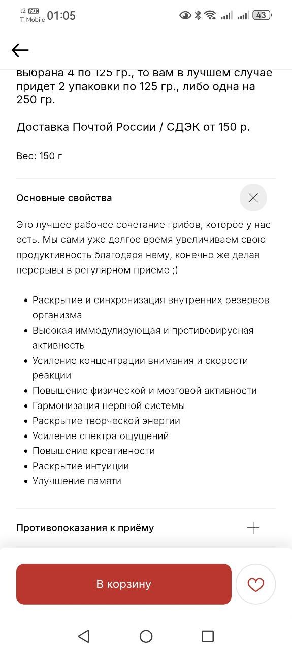 Понимаю, изначально моя вина, что сайт был открыт по этой ссылке, чтобы убедиться, верны ли мои подозрения. Но чёрт! Это скрин описания одного из их "супер крутого универсально прокачивающего организм" продукта. Меня бы даже особо не смущали уже подобные сайты с бадами и откровенной гомеопатией, но раскрытие творческой энергии? Повышение креативности?Раскрытие, Мэрри-ебать-её-в-сраку интуиции?!