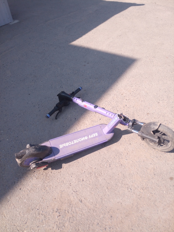 Выходил с машины, передо мной пролетел самокатчик, один на борту был и не осилил подъём, замутил сальто почти на ровном месте, только с полным контактом о землю, что ж вы так себя не бережёте то? Самого потерпевшего не фоткал, вышел с магазин уже последствия зафиксировал, а интересно как они в таком случае закрывают аренду то?