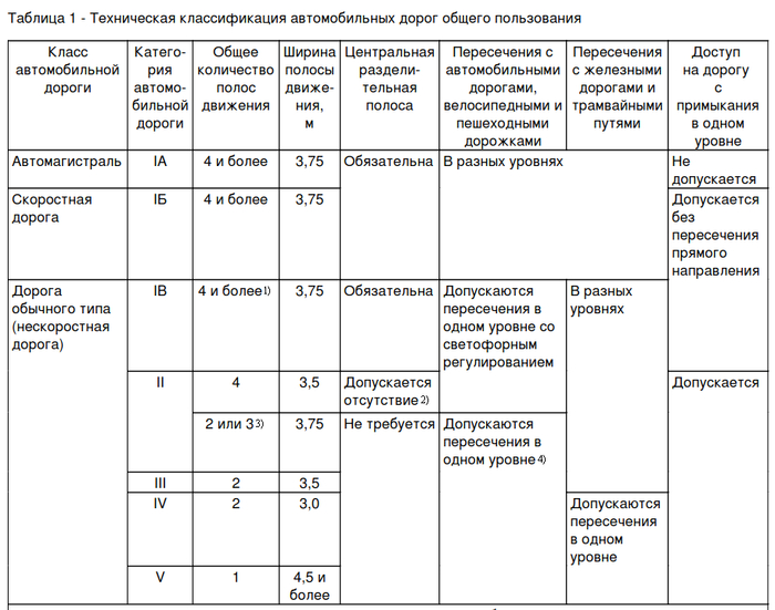 ГОСТ Р 52398-2005 КЛАССИФИКАЦИЯ АВТОМОБИЛЬНЫХ ДОРОГ даёт нам следующие параметры автомобильной дороги: