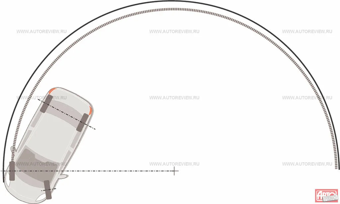 Радиус разворота – это радиус полуокружности, которую описывает автомобиль при развороте с места на 180 градусов при условии, что руль повернут до упора.