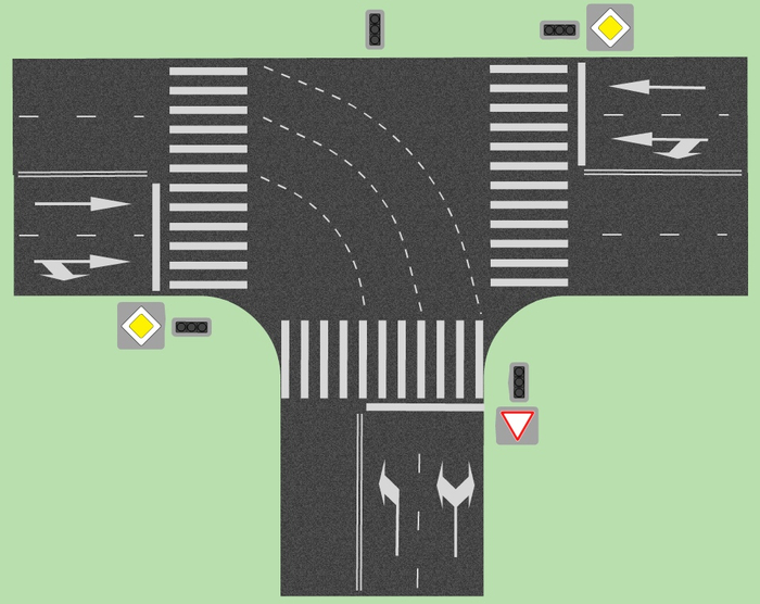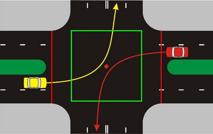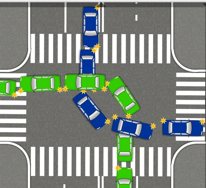 Как видим траектории движения безусловно заблокированы, никому повернуть невозможно.