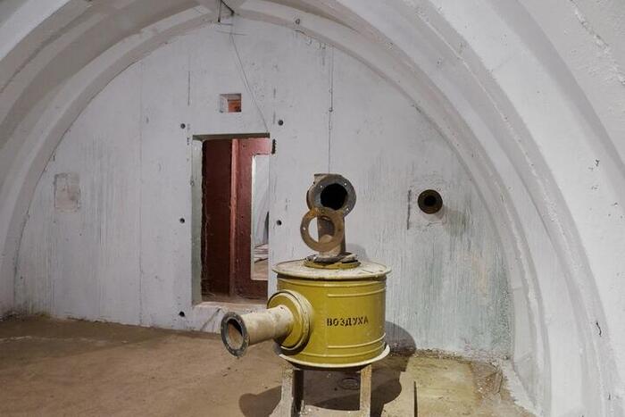85 «квадратов», пригодных для жизни, зарыты под землей и наглухо запираются за гермодвери — на поверхности есть лишь два бетонных входа и «грибочки» вентиляции. Пол бункера зарыт на 4,5 метра под землей, высота потолков — 2,7 метра. Со слов предыдущего владельца, в помещении держится плюсовая температура даже зимой.