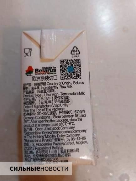 "Пару дней назад купила детское молочко, начала мыть пачки, а молоко оказалось не белорусское, а китайское. Сверху просто наклеили этикетки, а если сканировать штрихкод, то выдаёт ссылку на скачивание приложение для общения людей."