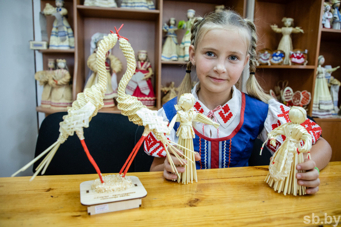 Помимо кукол, Татьяна Воронова также делает разнообразные сувениры из соломки, в том числе с аистами — символами Беларуси. Украшают ее мастерскую и цветы из ажурного золотистого материала. Умения охотно перенимают ребята, которые приходят заниматься в кружок «Вясёлка». Среди них и ученица 4-го класса Ксения Занько. Десятилетняя Ксюша получила на конкурсе диплом III степени в номинации «Лучшая соломенная кукла».