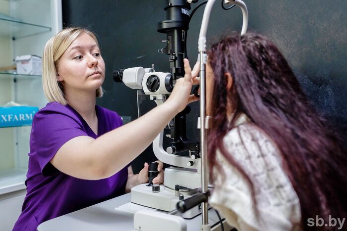 Молодой врач-офтальмолог Александра Алексеенко принимает пациентов в Добрушской районной поликлинике.