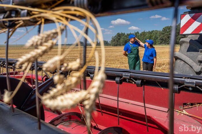 Семейный экипаж Петра и Натальи Асатапович из Буда-Кошелевского района на уборке пшеницы в хозяйстве «Белоруснефть-Особино».