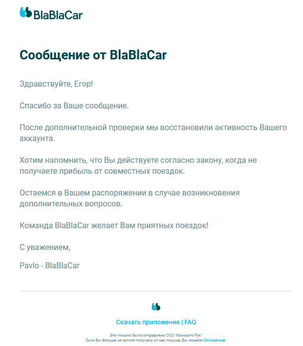И вот сижу я и думаю, как работает логика у сотрудников блаблакар.