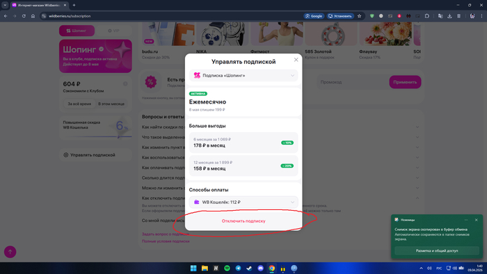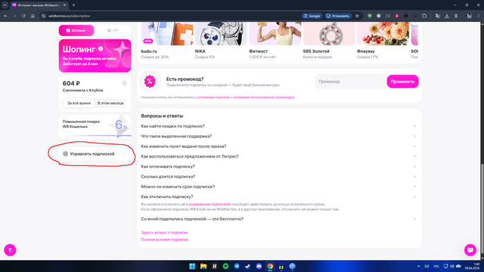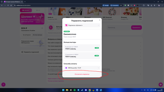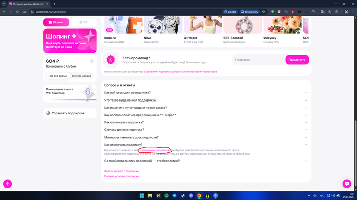 Не знаю новость это или "баян" , но вот такое скотство я заметил сегодня при отключении подписки WB клуб. Почему то кнопка отключить подписку появляется в меню управления подпиской только если зайти в него через ссылку в вопросах и ответах