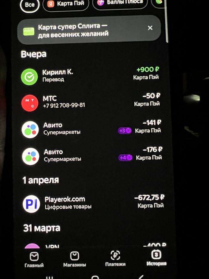 Потом глянул историю карты, и тут ещё странность! Какие то левые списания денег!