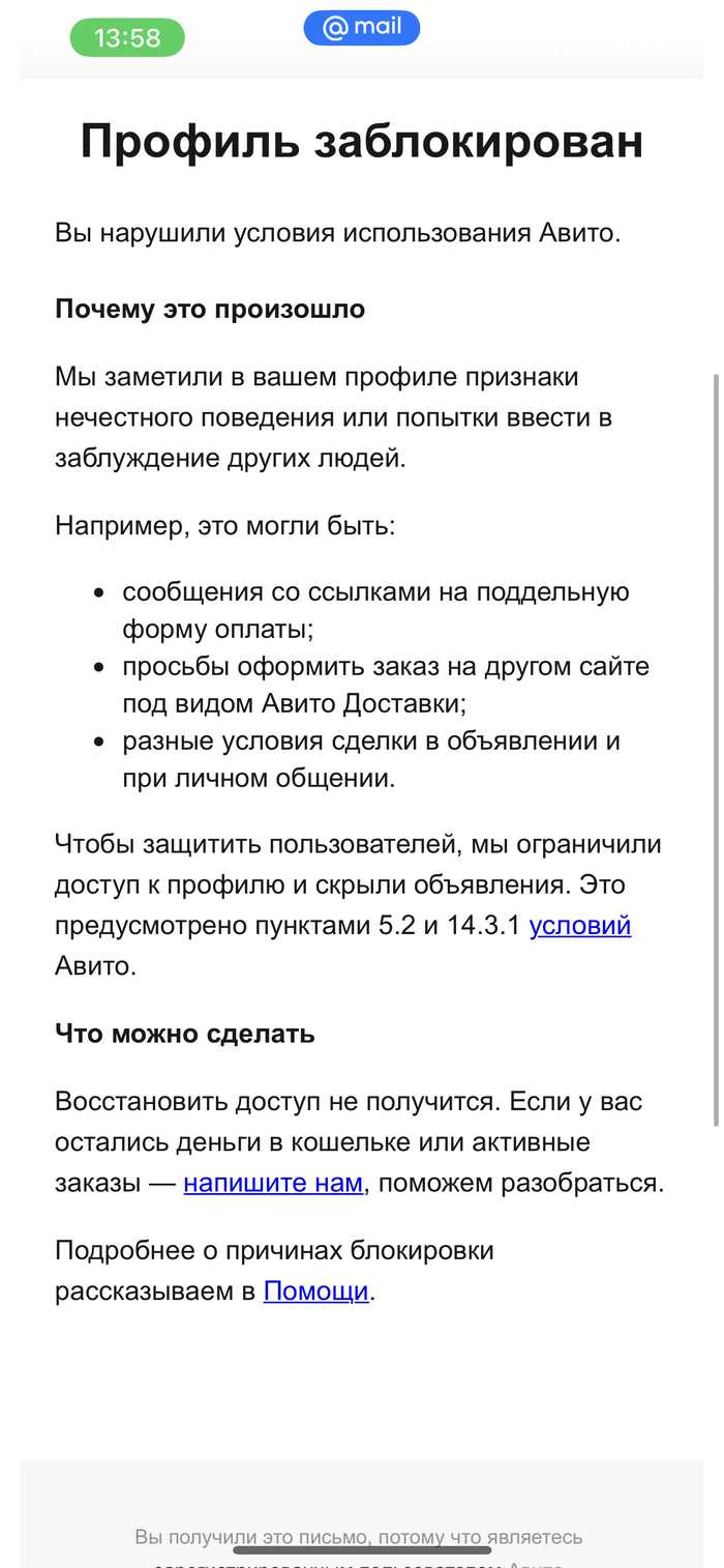 И так, Авито заблокировал мой профиль по причине что я что то нарушил.