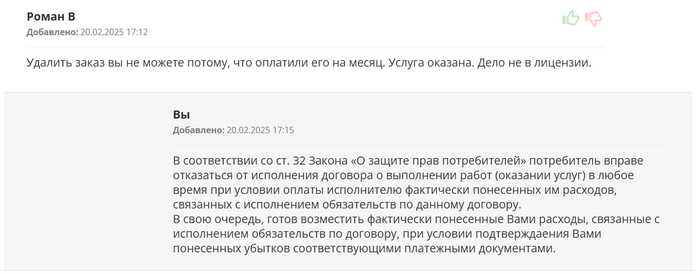 В ответ на все заявления о том, что условий подарка не предоставлено, от оплаченной услуги я могу отказаться в любое время, получаем ответы типа такого: