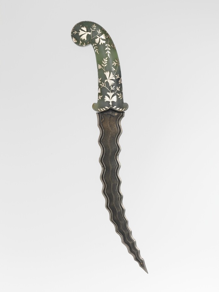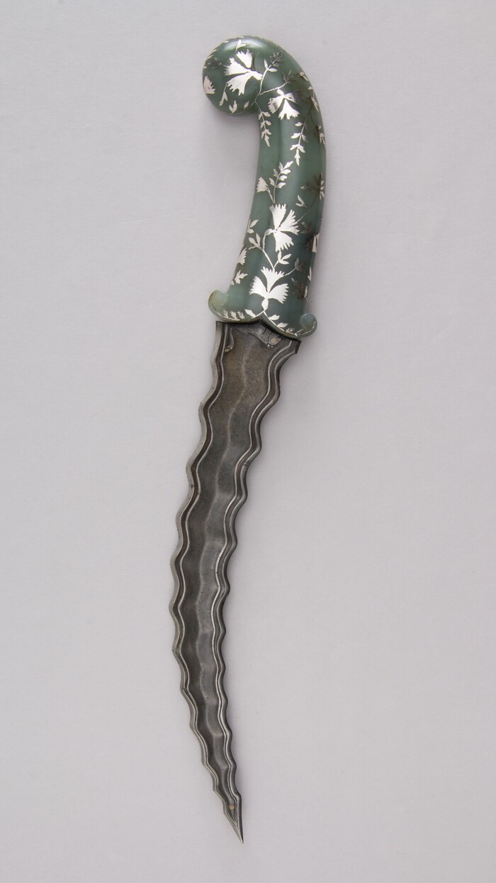 Кинжалы с изогнутым навершием «пистолетной рукоятки» стали популярны при дворе императора Великих Моголов Аурангзеба (годы правления 1658–1707) около 1660 г. и впоследствии регулярно появлялись на портретах могольских и декканских чиновников.