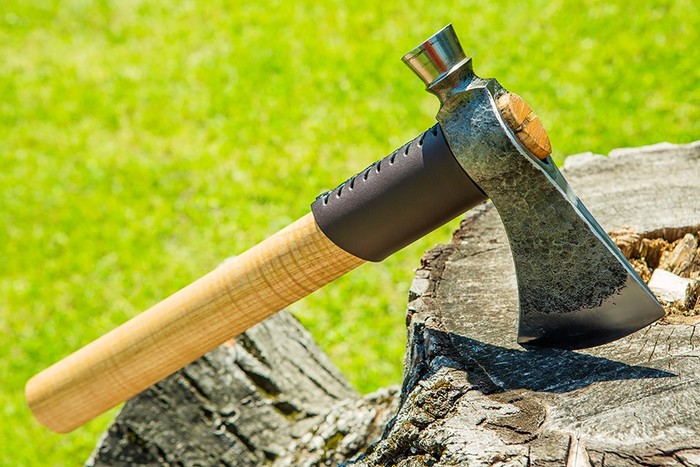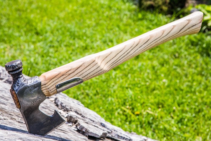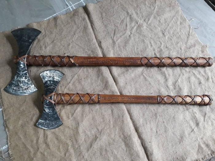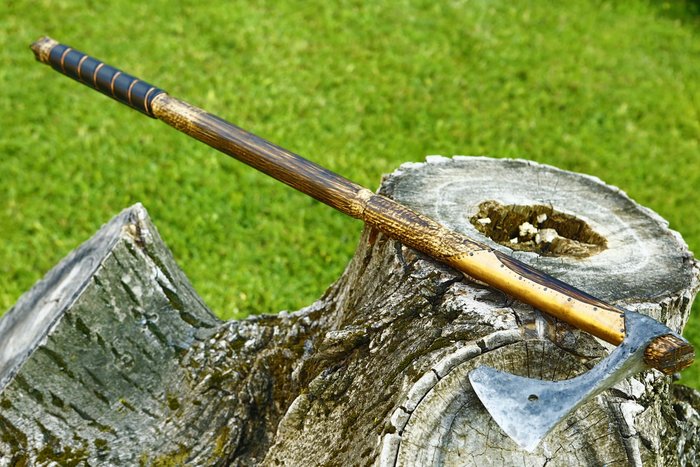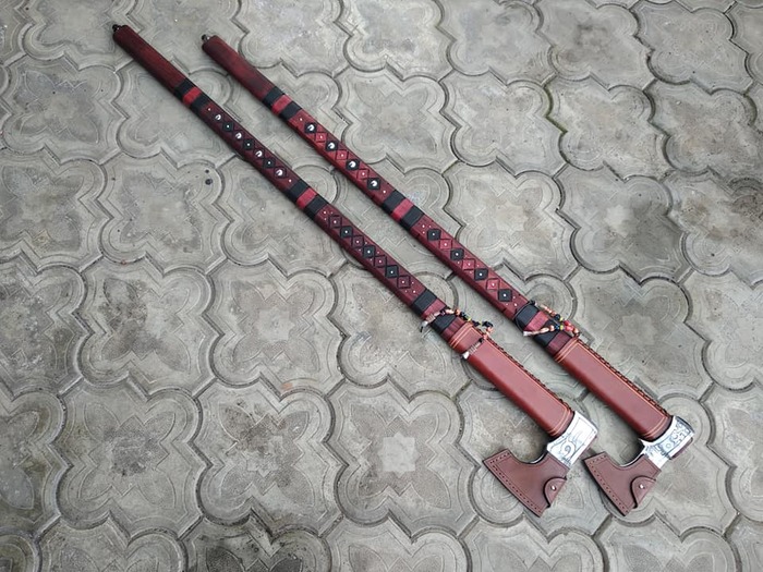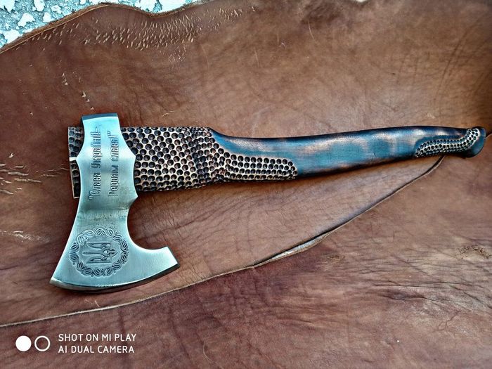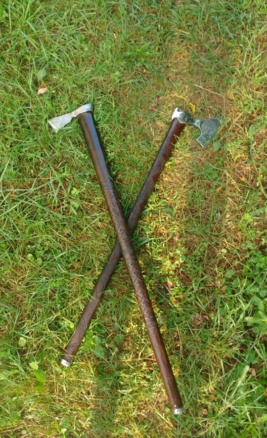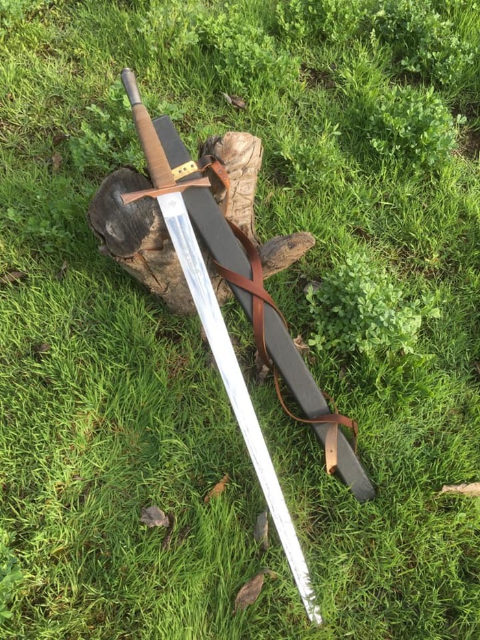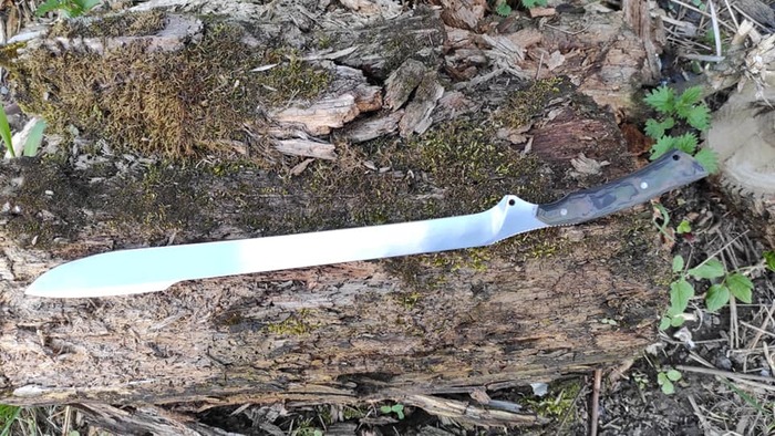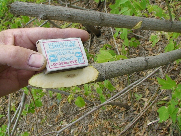Отдельное спасибо товарищу из Новороссийска, который в цвет ножен прислал мне красную шкуру ската для рукоятки. И товарищу из Алма-Аты, который прислал сорои-моно ( набор фурнитуры для рукоятки). И вот как видите собрал свою катану, и стало мне интересно, а на что годна китайская сувенирка( ножны от которой я забрал на свою), кроме украшения интерьера? Поэтому опробовал её в ближайшей посадке. Не судите строго, рубил как придется...