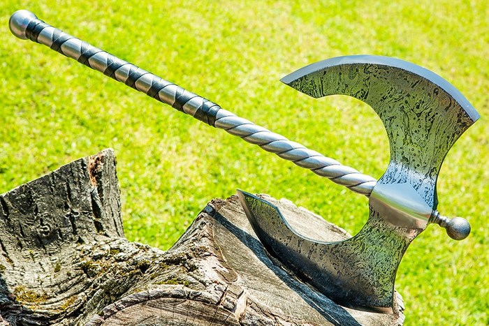 Согнулась она не сразу, а на деревце примерно в 3см в диаметре. Катану тоже опробовал...