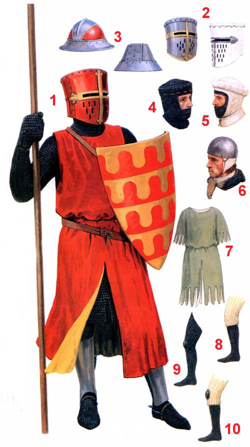 Именно кольчуга - хауберк защищала рыцарей эпохи Крестовых походов. Постепенно она обзавелась длинным рукавом, варежками, чулками и капюшоном. Такой комплект был относительно лёгким - около 12 кг, не стеснял движение и защищал от тогдашнего оружия вполне прилично.