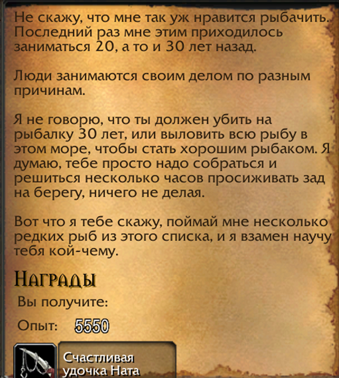 Про рыбалку – нашел несколько забавный текст того квеста от Ната Пэгла.