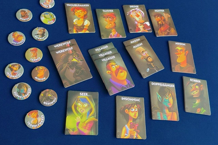 В игре вы найдёте множество карточек Ролей и жетонов:
