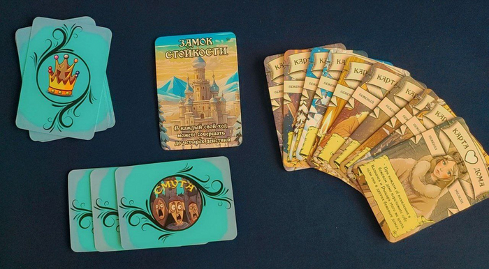 Раздайте каждому игроку на руку по 5 карт (если выпадает карта Смуты, она замешивается обратно в колоду, такие карты не могут быть в руке и разыгрываются сразу при выходе из колоды в процессе игры).