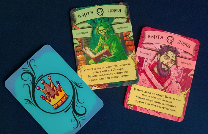 2) Разыграть карту Дома. Расположить Персонажа в свою или (если это прописано) в дом другого игрока, сразу же применив её эффект.
