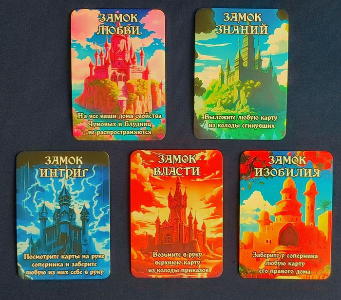 Чумовые замки сами по себе - соревновательный картошлёп, отдалённо напоминающий такие настольные игры, как Битвы боевых магов, Взрывных котят и Страдающее средневековье.