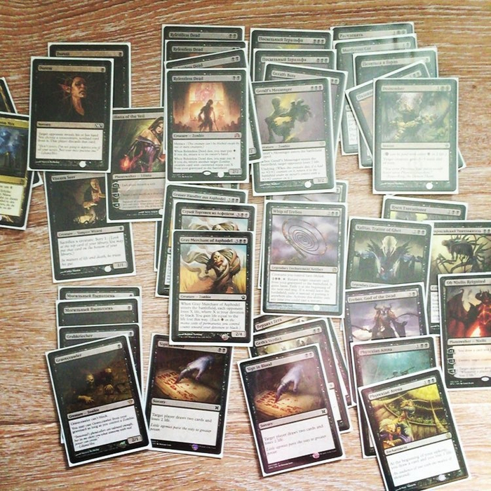 В общем, в тот день в мою жизнь плотно вошли Звездак, МТГ и портвешок. И прое6анные пары, само собой. Подержав в руках эти карты впервые — с вручную отрисованными артами (никаких нейросеток и даже фотошопа), с сложными но логичными правилами, с хитрыми комбинациями и бесконечными вариациями по сбору колод, моя задротская сущность блаженно запульсировала. А уж, когда Носфер надавил на мою задротскую простату вопросом: «Ты вроде по зомби прикалываешься. Хочешь, соберем тебе колоду зомбей?» я понял, что пропал.