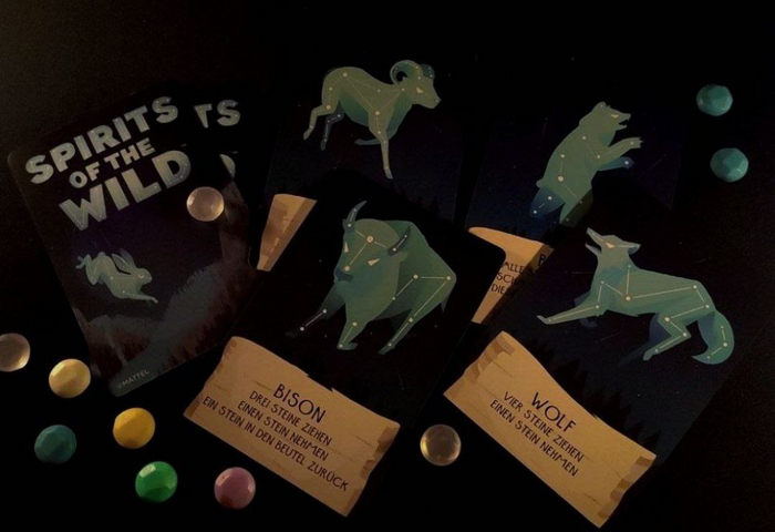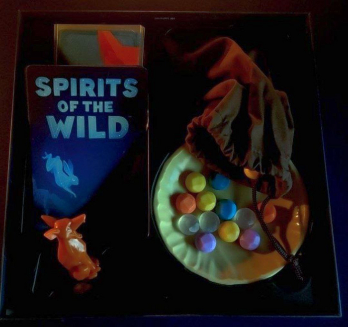 Spirits of the Wild - это игра для 2 игроков, разработанная Ником Хейсом (Wizards Wanted, Stratego Conquest) и изданная Mattel в 2018 году. По своей сути - это игра на сбор сетов, хотя вместо привычных многим карт, игрокам предстоит собирать наборы разноцветных «мистических» камней, чтобы побудить духов лесных животных поделиться своими секретами, в то время как койот-трикстер* пытается сорвать все их планы. Для этого игроки будут разыгрывать карты Действий, чтобы добывать камни из чаши, доставать новые из мешка или использовать койота, подсылая его мешать своему противнику.