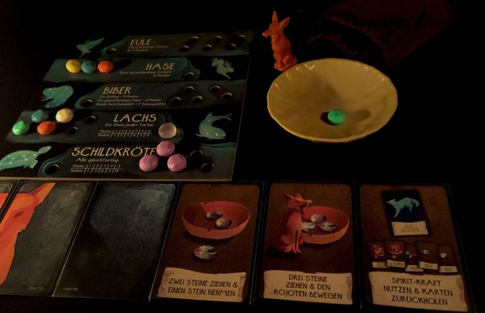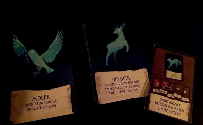 В области каждого животного на планшетах также есть особое место, куда игрок может поместить полупрозрачный камень Духа. Это удвоит ваши очки за эту область в конце игры, но будьте осторожны… Как только камень Духа ляжет в какую-либо область, животное «заблокируется», и вы не сможете добавить к нему ни единого камушка до конца игры.