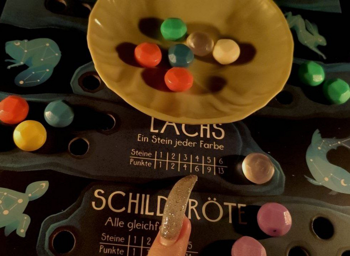 Черепаха же просто жаждет целую кучу драгоценных камней одного цвета. Как и в случае с лососем, чем больше вы отдаёте, тем больше получаете. Один камень — это одно очко, но если вам удастся собрать все пять, вы заработаете сразу 14 очков!