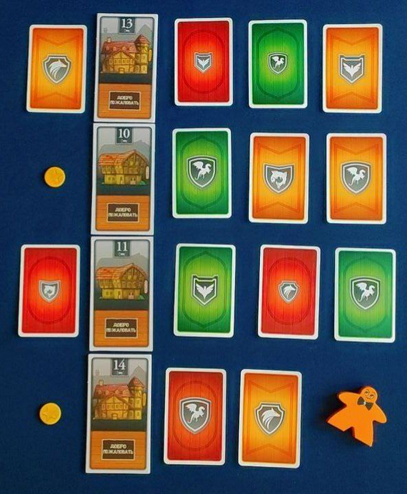 Справа от гостиниц (у Парадного входа) в очереди могут располагаться максимум 4 Гостя. Карты выкладываются в ряд, одна за другой.