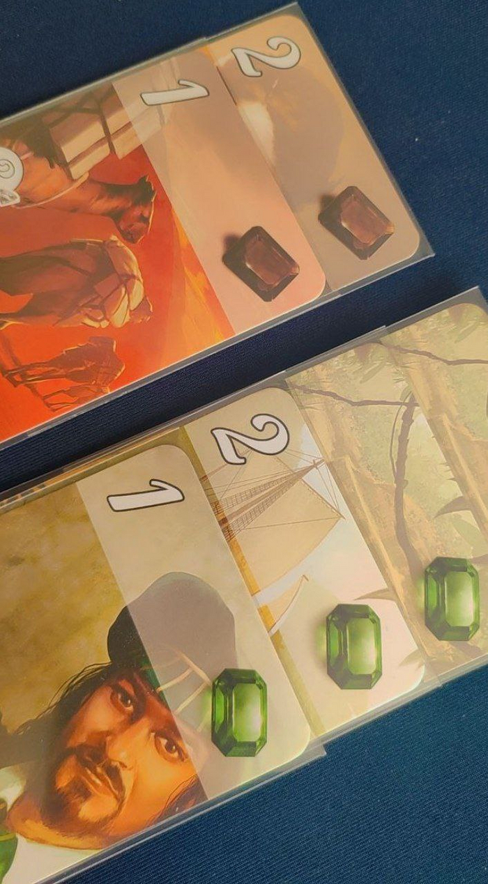 Карт Развития имеют три разных уровня. Стоимость каждого уровня карты увеличивается, а художественное оформление становится всё более разнообразным. На первом уровне изображены шахты с драгоценными камнями, на уровне два — транспирация и огранка, а на третьем уровне карты откроют вашему глазу различные ювелирные магазины. Карты сами по себе не уступают по качеству остальным компонентам и обещают выдержать многие и многие игры. Я не первый владелец своей коробочки, но карты в ней были как новые (хоть я и решила от греха подальше облачить данную игру в протекторы, предугадав, что коробка в нескольких моих игровых ячейках будет беспощадно заигрываться).