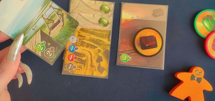 Например: если у игрока есть 2 изумрудных рудника и один ониксовый, и он хочет купить карту стоимостью 2 изумруда и 2 оникса, ему нужно уплатить только один жетон Оникса.