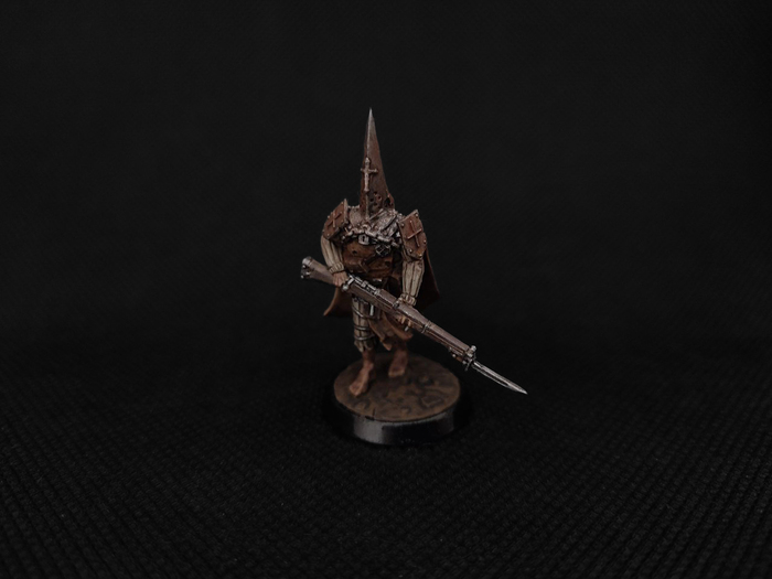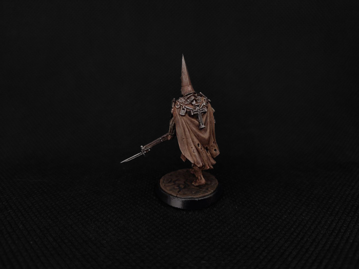 Святой воин траншей. Считает своим религиозным долгом совершать паломничество на священные поля битв, чтобы сражаться с еретическими легионами. Паломники носят железные капироте, чтобы изолировать свой разум от ужасов войны.