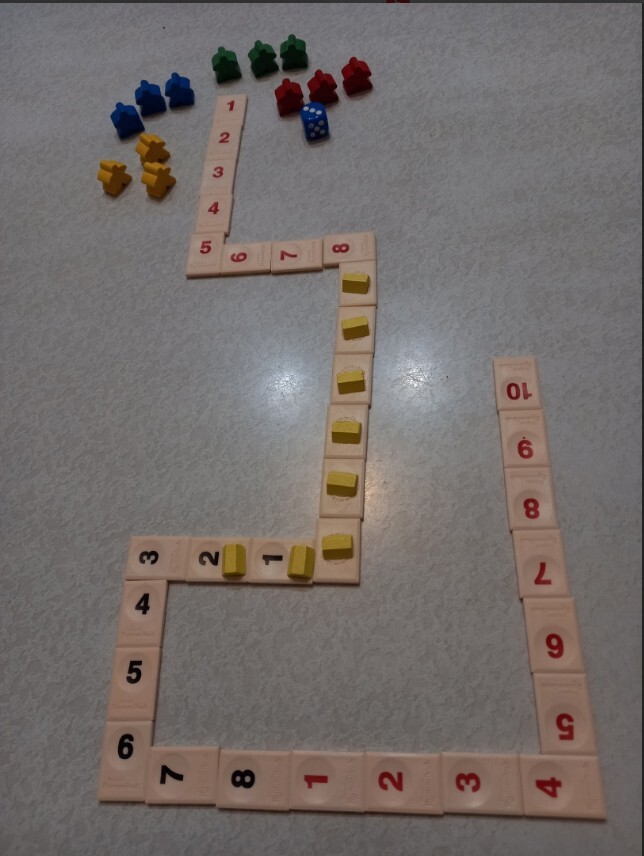 Голь на выдумки хитра. Сделал игру из подручных средств, используя фишки Руммикуба и миплы Каркассона