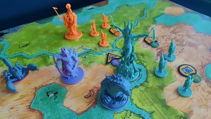 4) Каждый игрок подсчитывает свою силу в регионе: каждая фигурка имеет базовую силу 1 плюс бонусы, что приносят разыгранные эффекты карт, Стражи, свойства Анха и т.д.