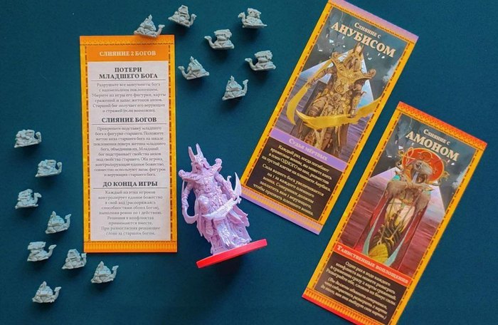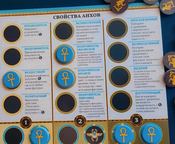 Затем Младший бог подстраивает Свойства Анха на личном планшете под Старшего бога так, что бы они соответствовали открытым свойствам на его планшете и отдаёт Старшему все свои жетоны Верующих, а также пластиковое кольцо своего цвета, которое одевается на основание его миниатюры бога.